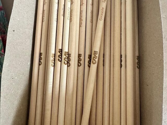 selezionato capsule con semi di girasole, basilico e margherita, chiaramente indicati sulla matita per invitare alla scelta e alla cura.